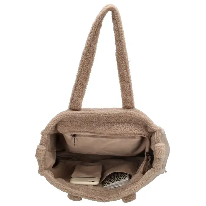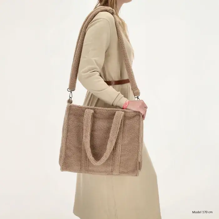 De buitenkant is vervaardigd uit een sterke combinatie van nylon en polyester, waardoor de tas licht van gewicht blijft, maar tegelijk duurzaam en slijtvast is. Het zachte teddy-design maakt deze shopper een echte blikvanger en geeft elke outfit een modieuze, cozy touch. De neutrale stijl maakt de tas bovendien makkelijk te combineren met diverse kledingstijlen.