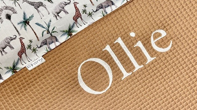 De babydeken is zelf samen te stellen in eigen gewenste stoffen die wij beschikbaar hebben voor onze custom-producten. Zoek je een warm dekentje voor in de kinderwagen? dan kun je kiezen voor een heerlijke zachte fleecestof. Wil je een zomerdekentje? kies dan voor een wafelstofje!